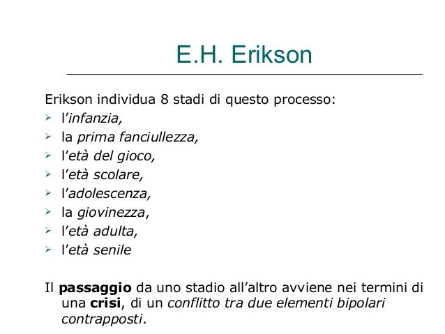 Nonostante Erikson e Marcia considerino ladolescenza la fase fondamentale, non trascurano tutto il ciclo vitale che caratterizzato da cambiamenti e scelte che. If one assumes that Erikson s perspective is vali then the of this study fail to support Marcia s continuum assumption. Teoria psicosociale dello sviluppo di Lindividuo dovrà impegnarsi a livello ideologico, professionale e personale per sviluppare la propria identità.